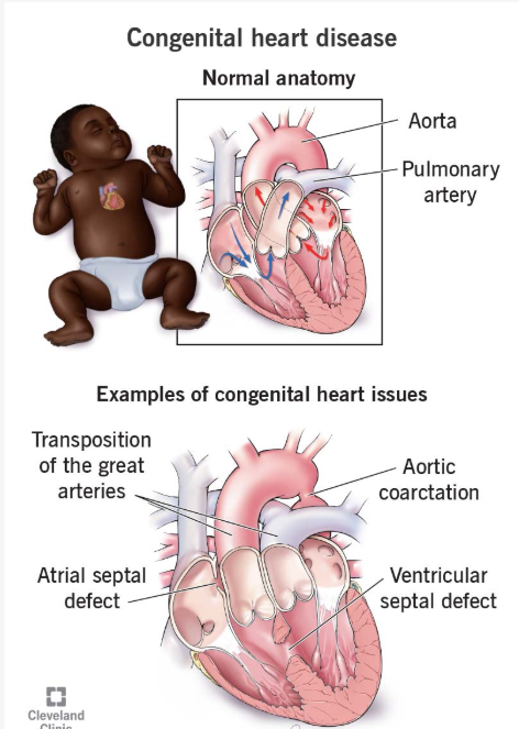 Congenital heart disease (CHD) is an issue with your heart’s structure that’s present at birth. These issues — which keep blood from flowing normally — may include: